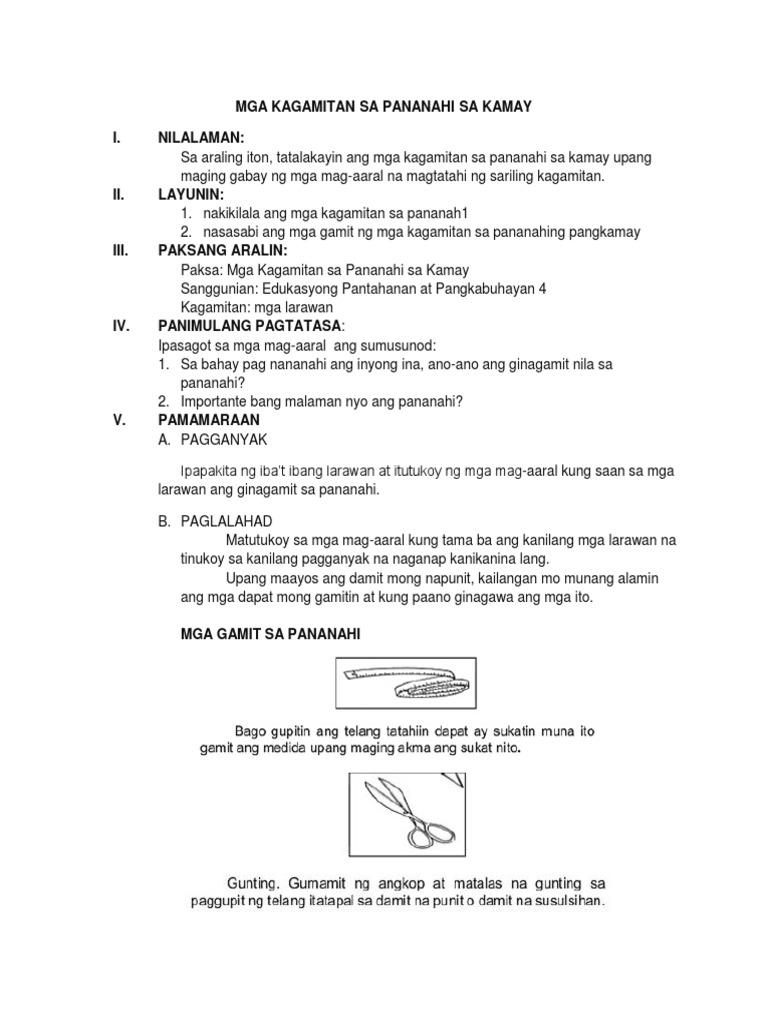 Nurture your students curiosity in math English science and social studies. Lesson Plan Sa EPP - Kagamitan Sa Pananahi Sa Kamay. Ginagamit ito sa paggupit ng tela.